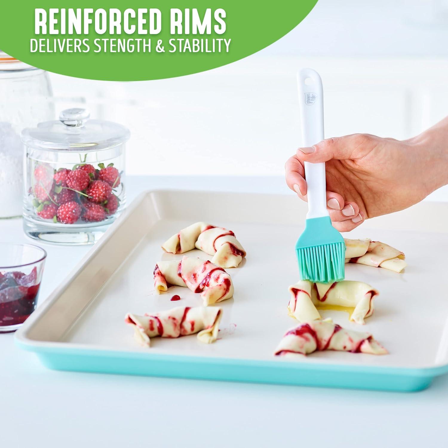 GreenLife Bakeware Healthy Ceramic Nonstick, 4 Piece Toaster Oven Baking Set with Cookie Sheet Muffin and Cake Pan, PFAS-Free, Turquoise(Turquoise)