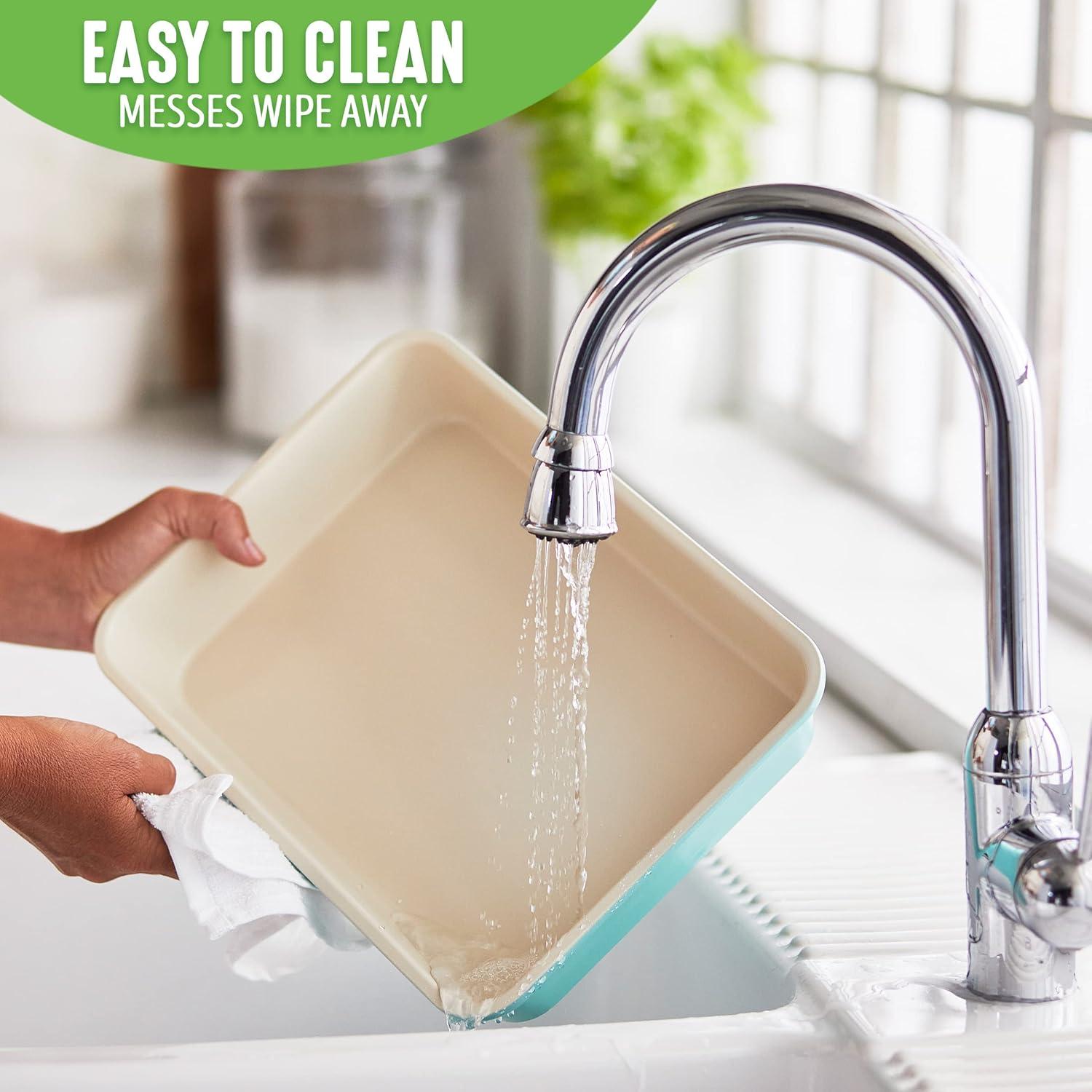 HEALTHY CERAMIC NONSTICK: Our healthy and easy-to-clean ceramic nonstick coating is derived from sand and delivers effortless release with quick cleanup